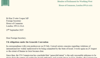 Letter to Foreign Secretary – 25th September 2025