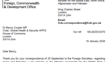 Letter to Foreign Secretary and Minister for Middle East – 26th August 2025