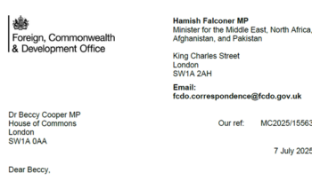Response from Minister for Middle East, North Africa, Afghanistan and Pakistan – 7th July 2025