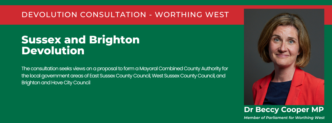 To have your say, please take part in the consultation on the proposal to form a Mayoral Combined County Authority for Sussex. You can view and respond to the consultation here: Sussex and Brighton Devolution Consultation