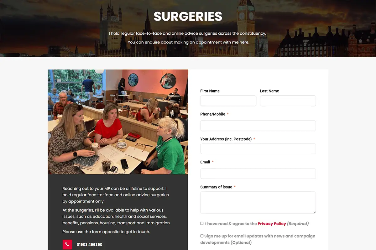 As your MP for Worthing West, I can help you with or offer advice on issues, such as; benefits, immigration, tax issues, problems with the NHS, child maintenance and education matters.